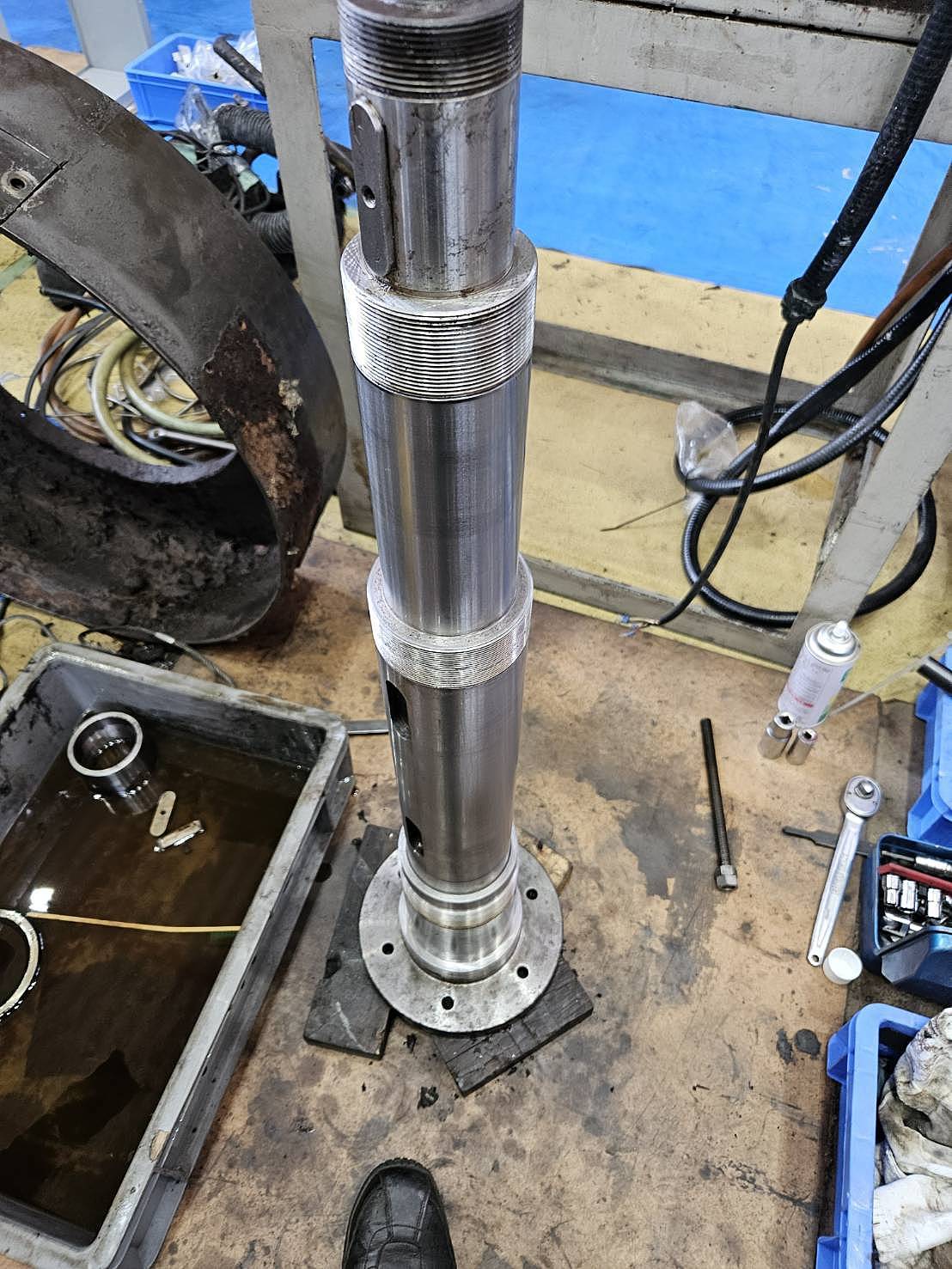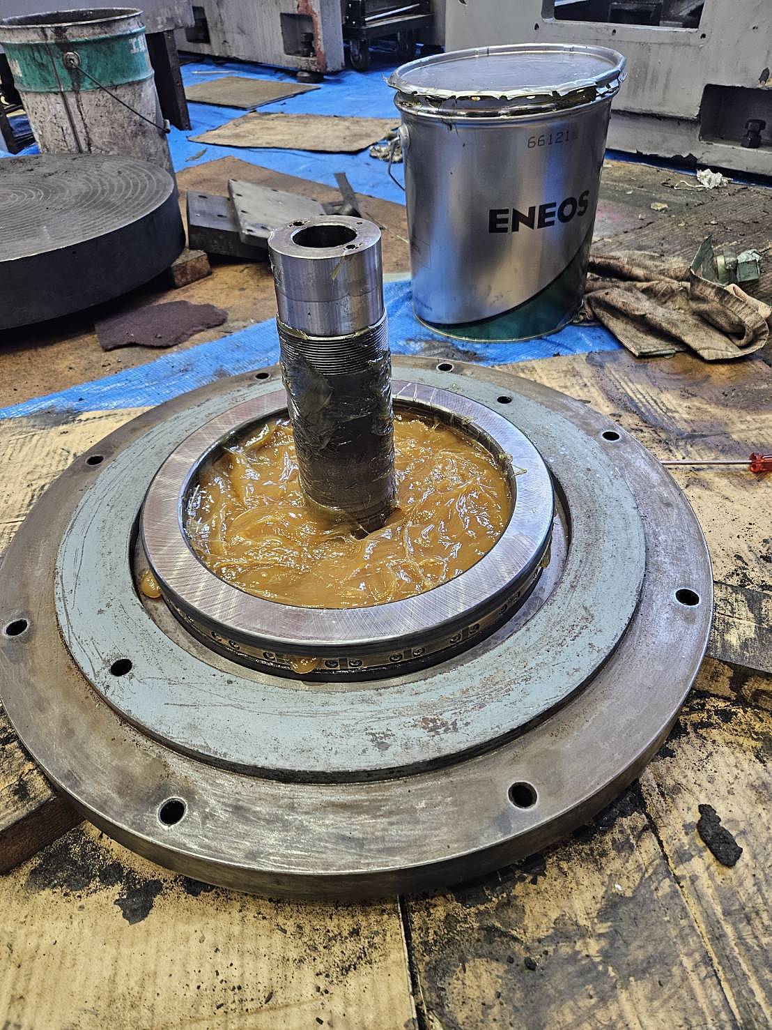 主軸に異音、経年劣化がある為ベアリング交換、掃除を実施しました。