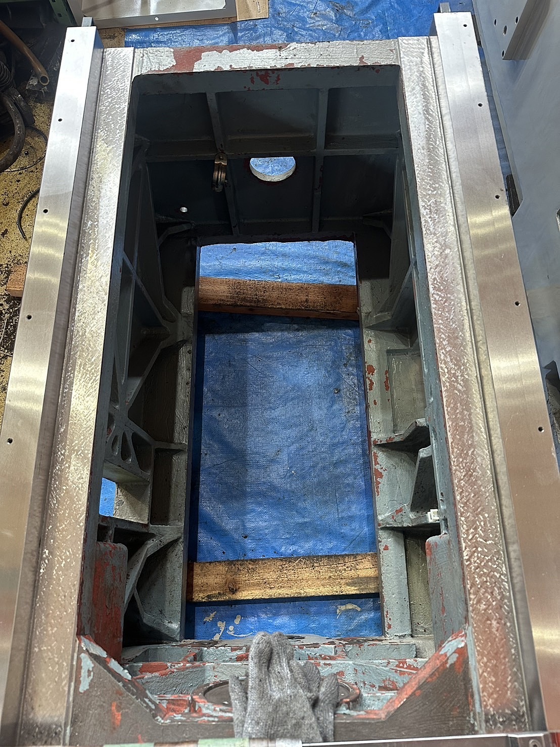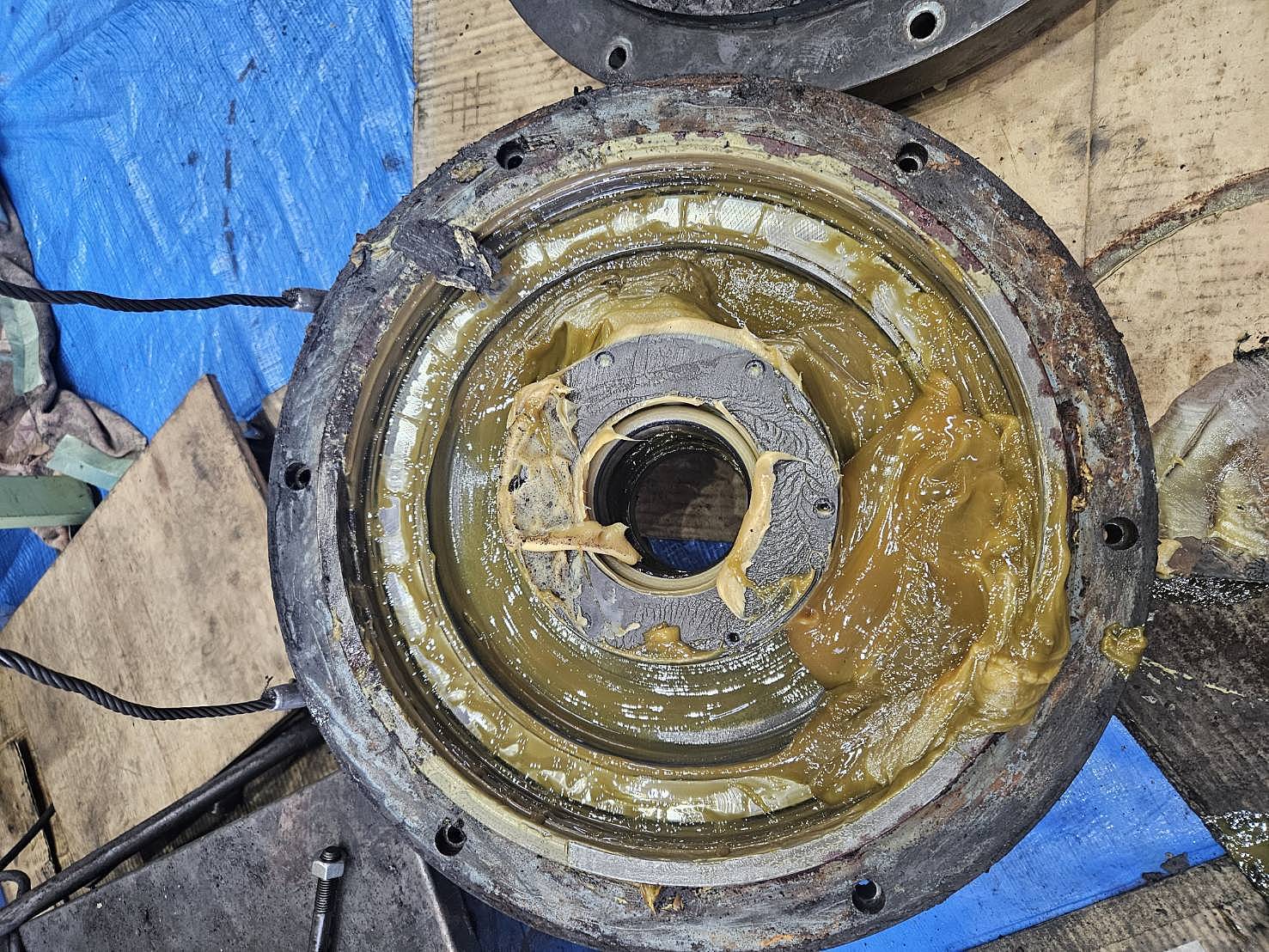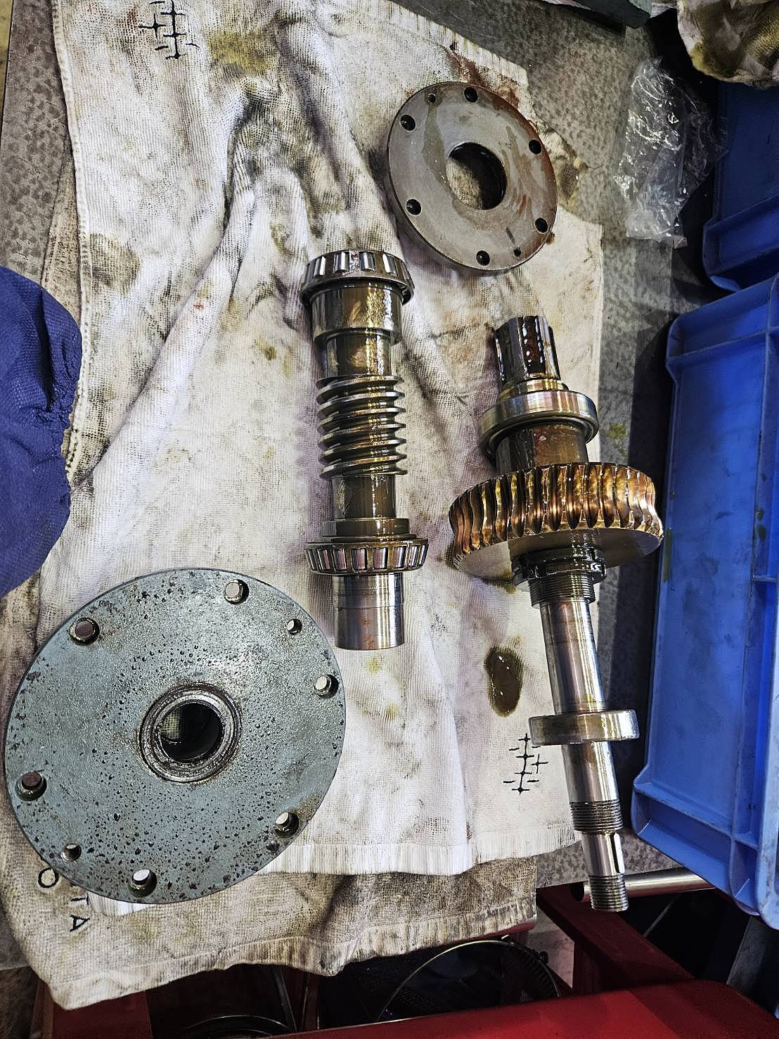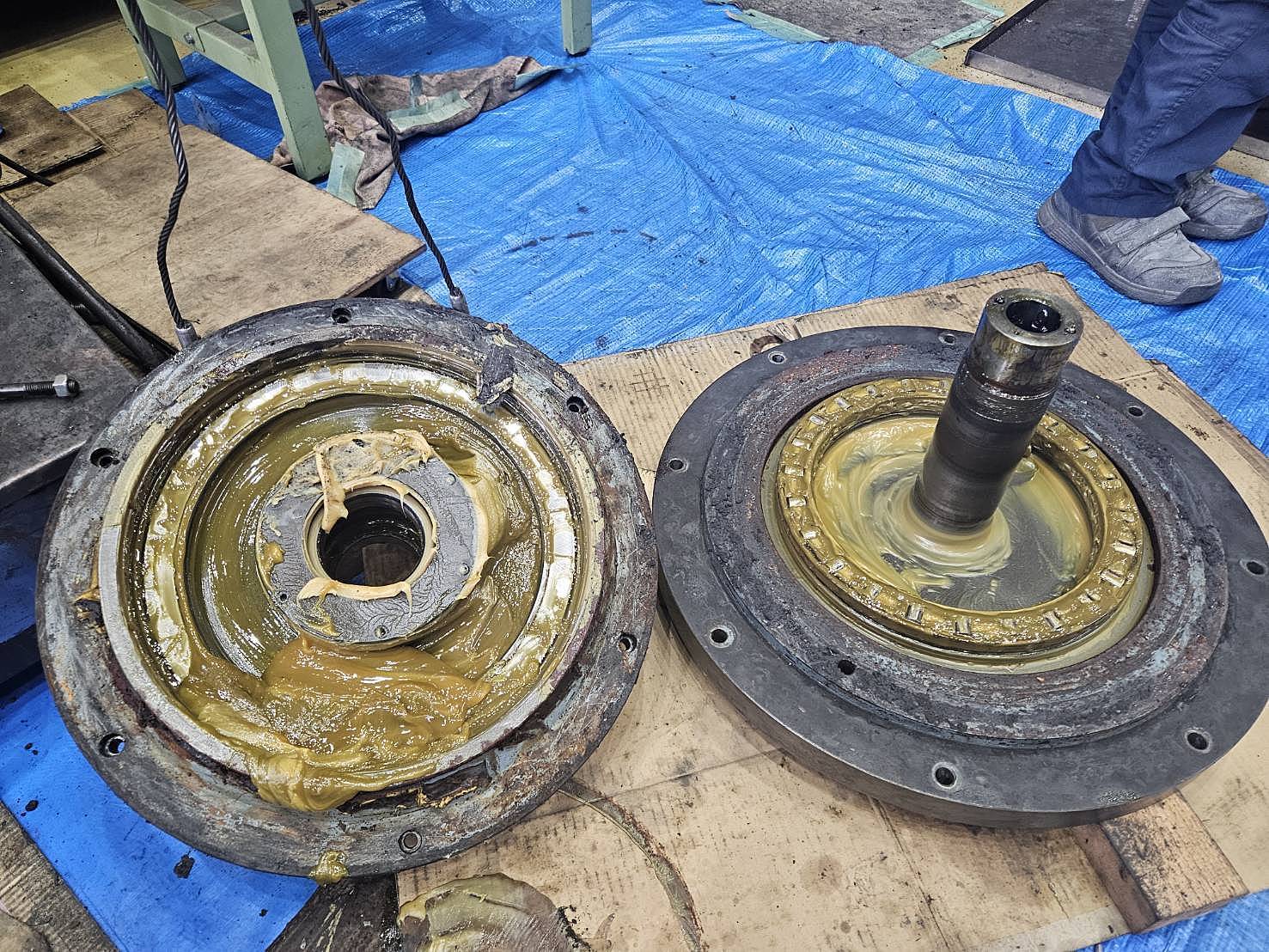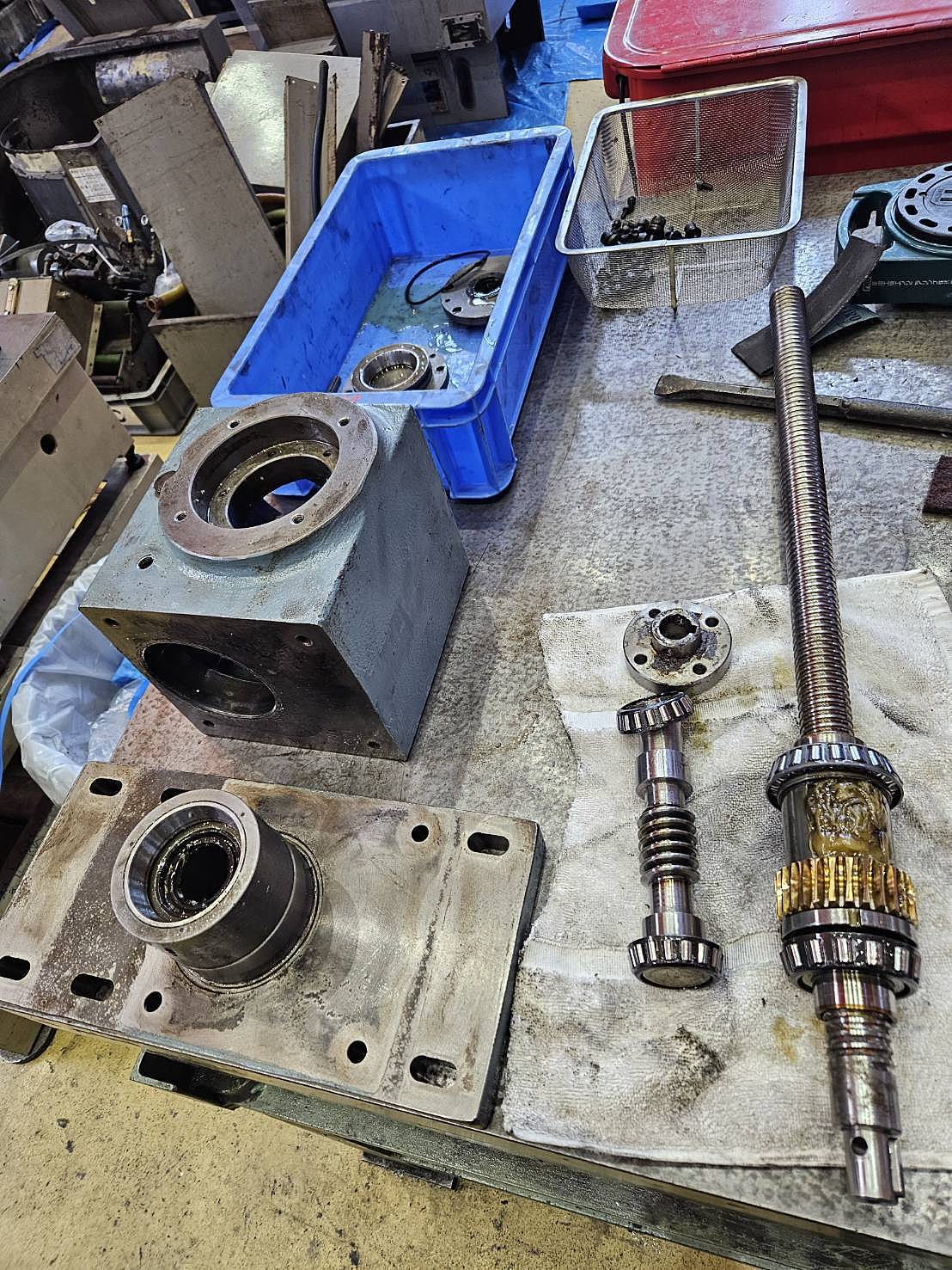 昇降ギアボックス内部のベアリングに異音、経年劣化がある為べリング交換、分解清掃を実施しました。