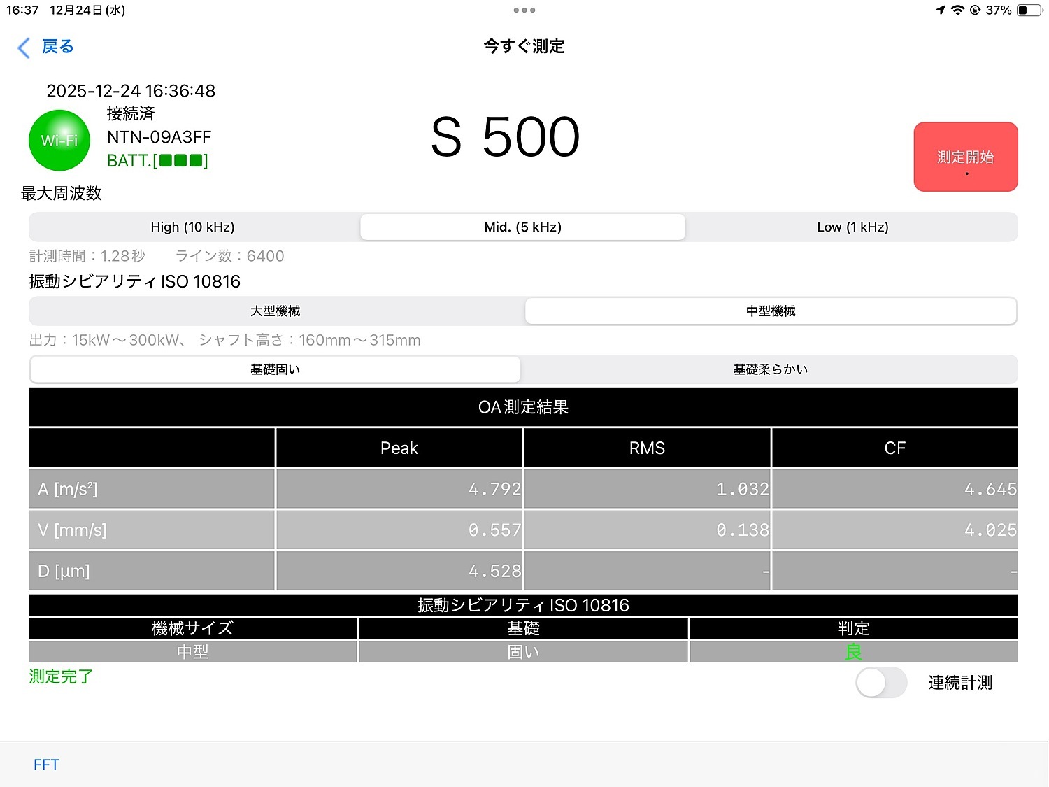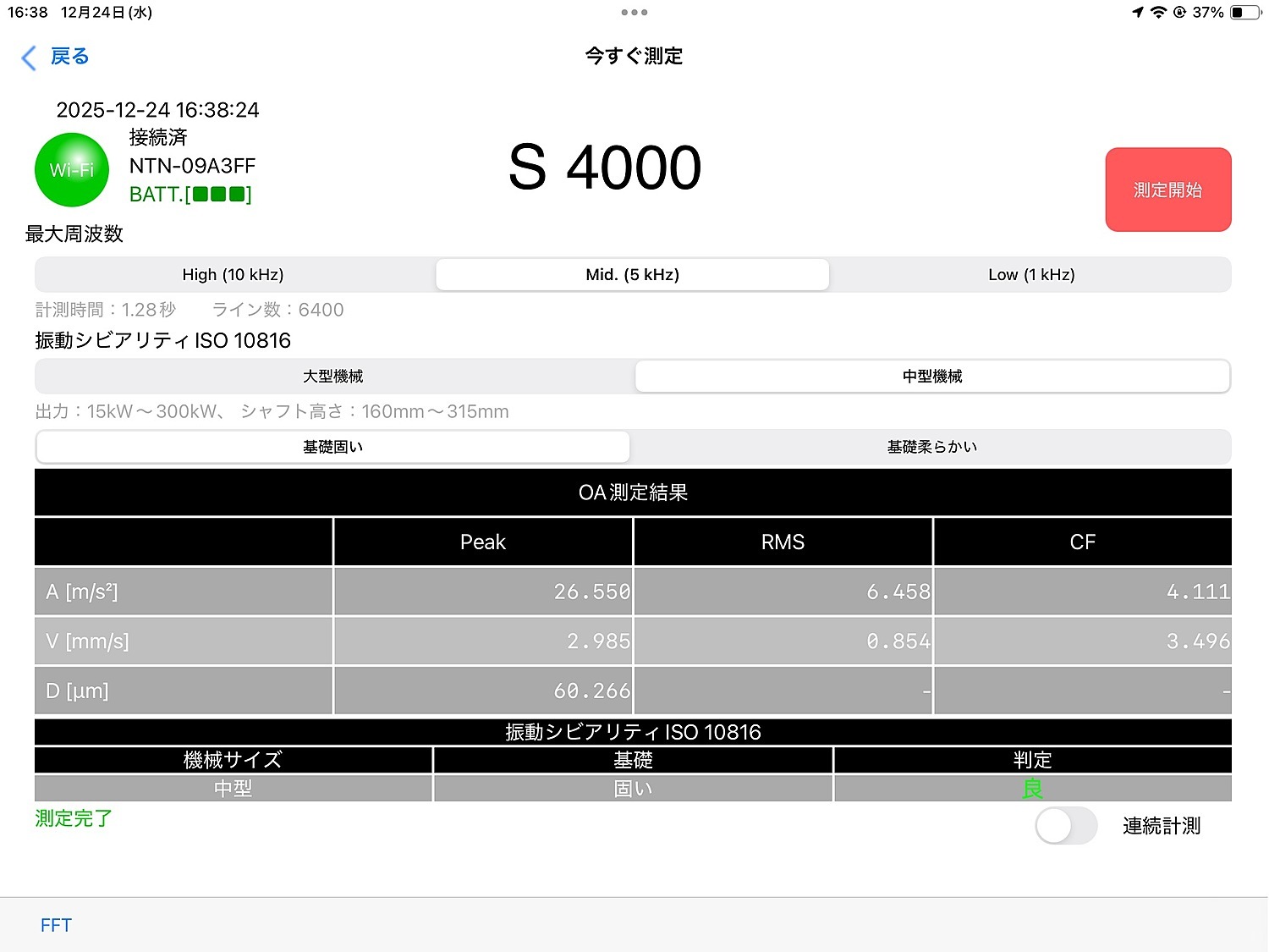 交換後NTN社製ポータブル異常検知装置にて測定し振動値良好です。