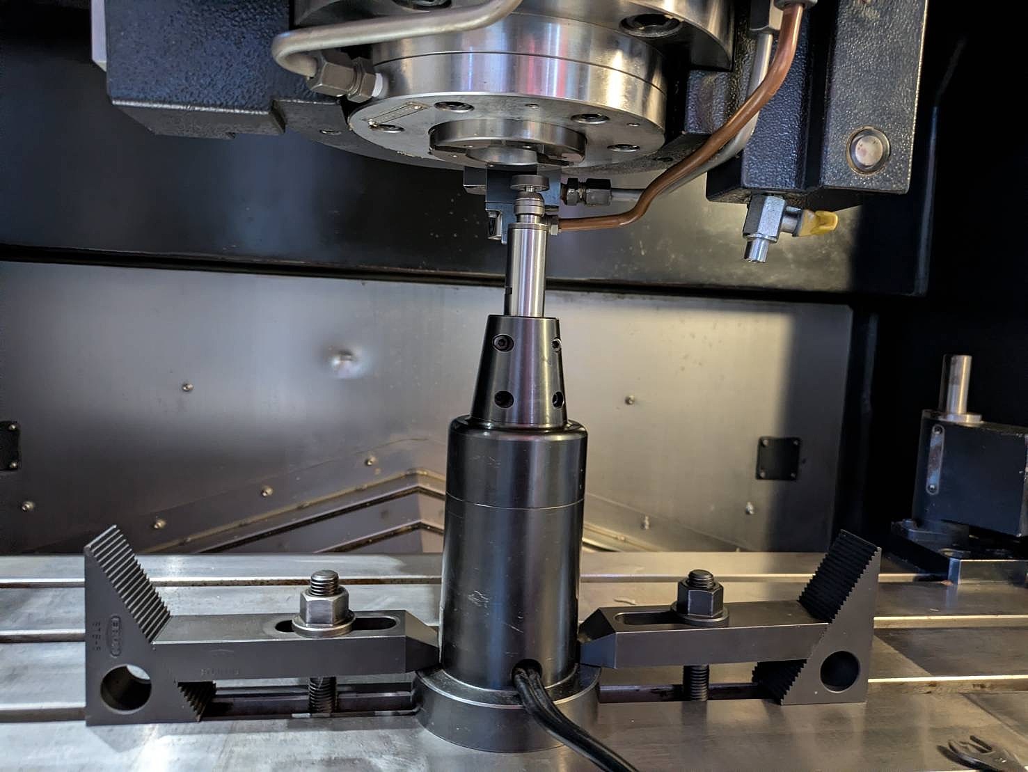 主軸ベアリング交換、主軸テーパー研磨、扉修理、テレスコ調整 主軸テーパー研磨前(先端0.035,根本0.005) 主軸テーパー研磨後(先端0.008、根本0.002) クランプ力 10.71kN |