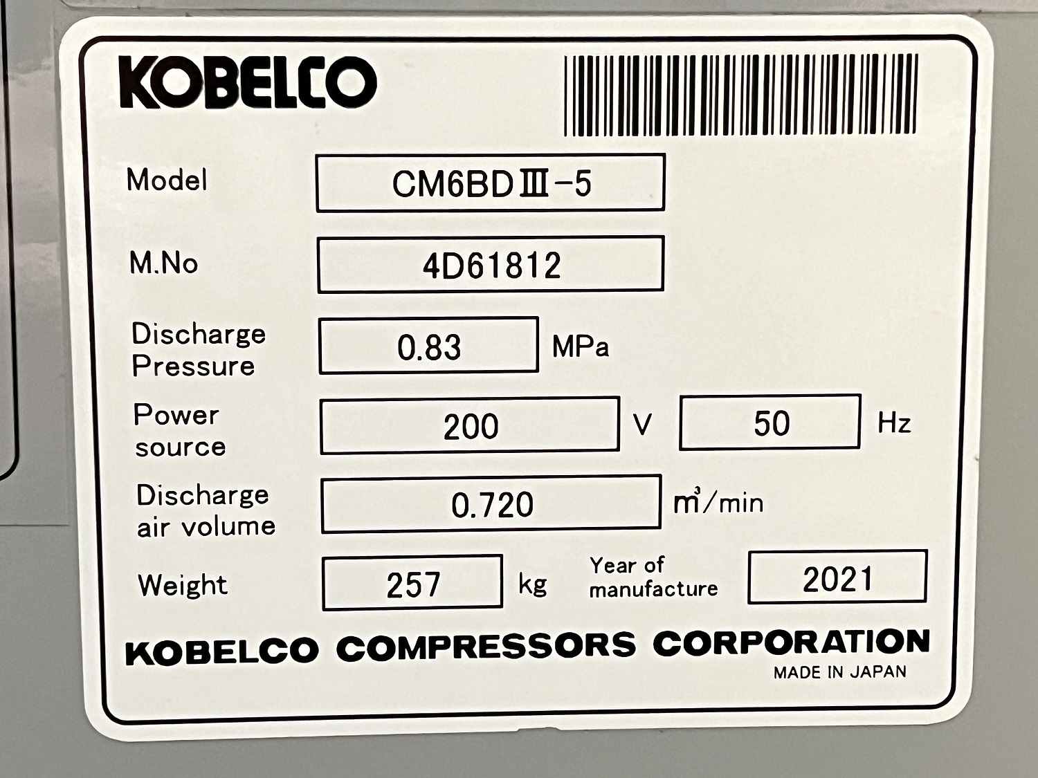 スクリューコンプレッサー【未使用品】/コベルコ/CM6BDⅢ-5 [C182861]