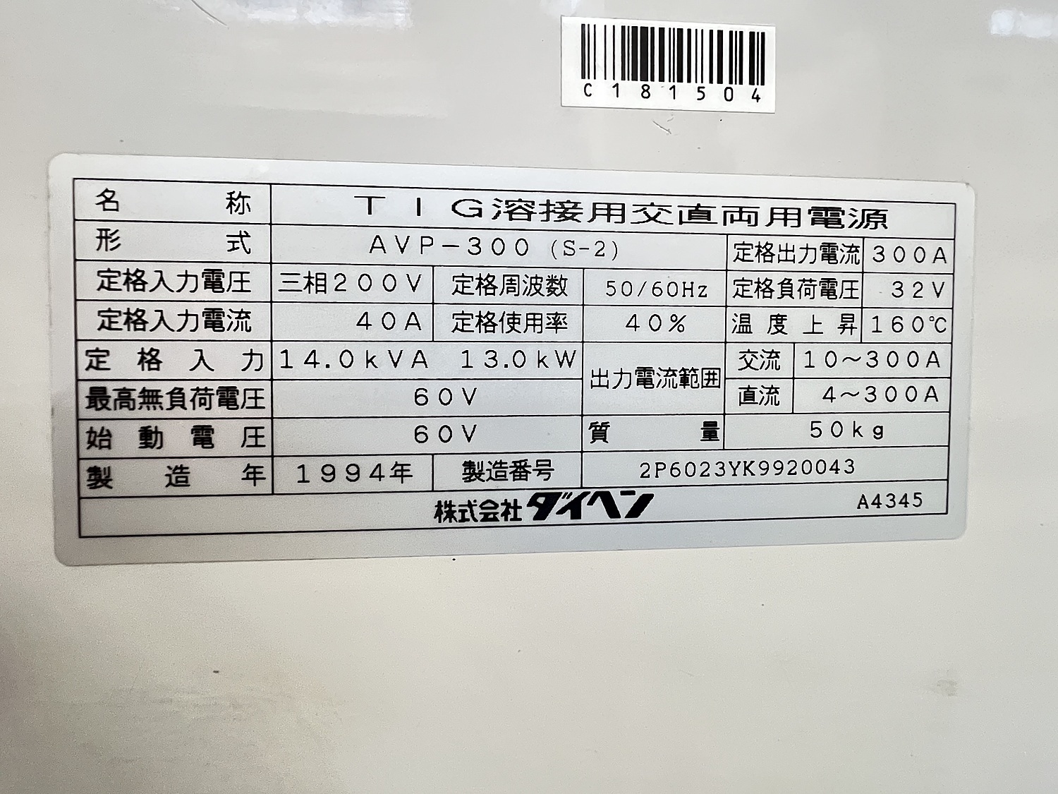 TIG溶接機/ダイヘン/AVP-300 [C181504] ¥ 150,000 |