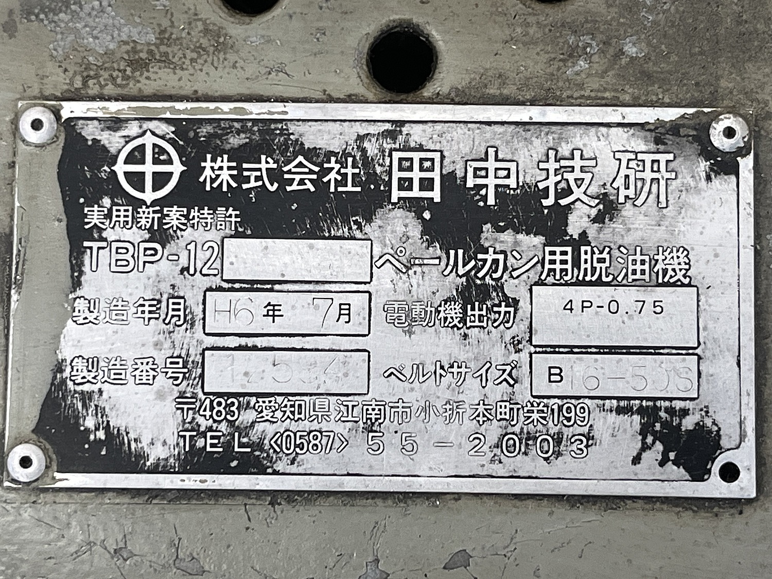 ペールカン用脱油機/田中技研/TBP-12 [C183867] ¥ 250,000 |