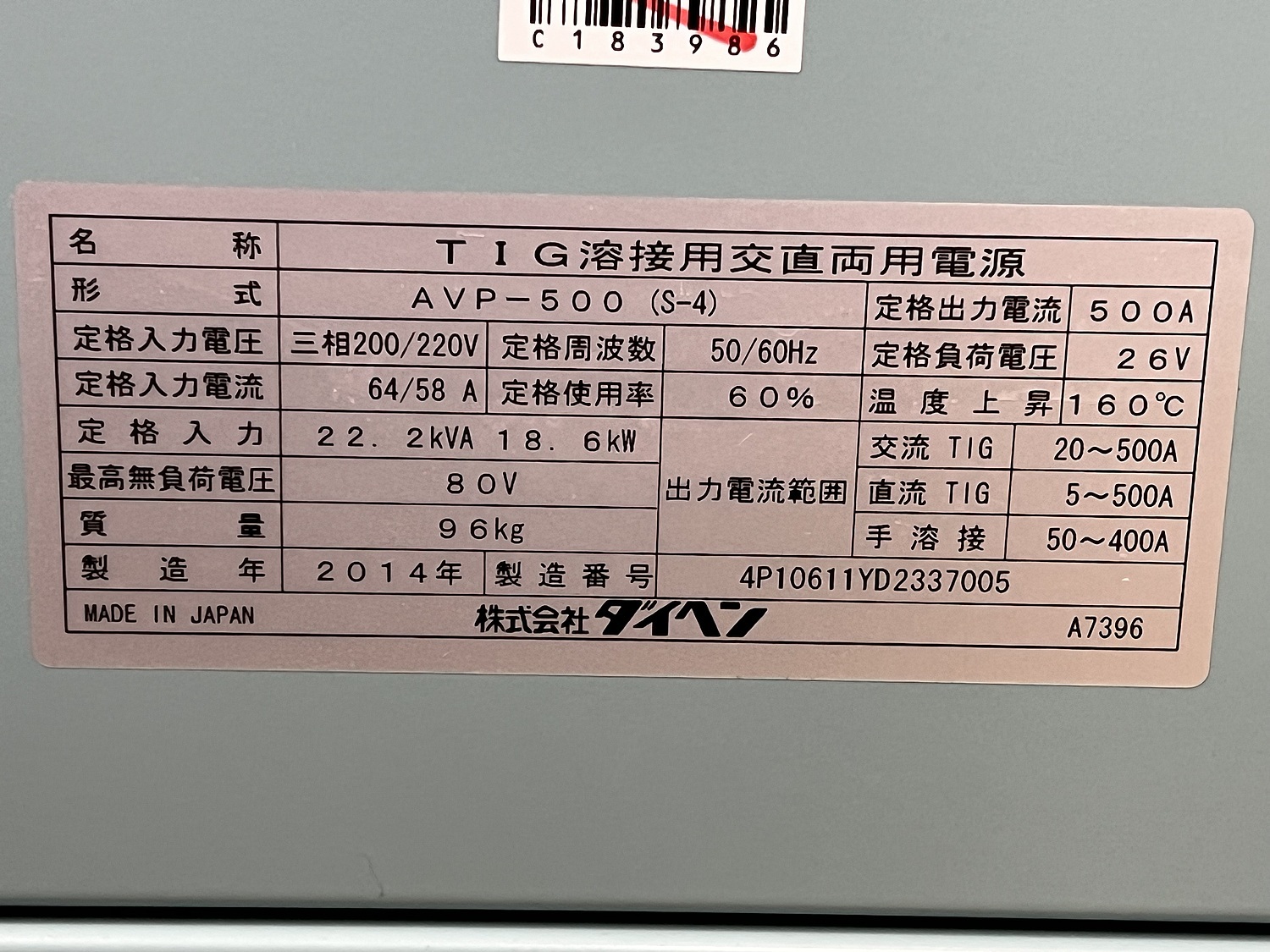 TIG溶接機/ダイヘン/AVP-500(S-4) [C183986]