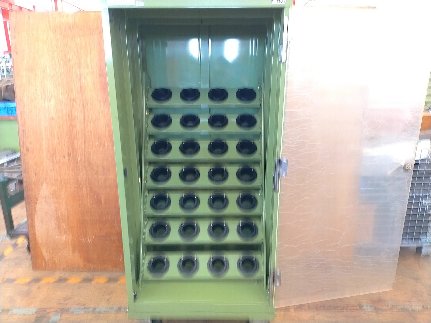 寸法 700x750x1700mm BT50用 28本収納 前面にアクリル扉付 キャスター付