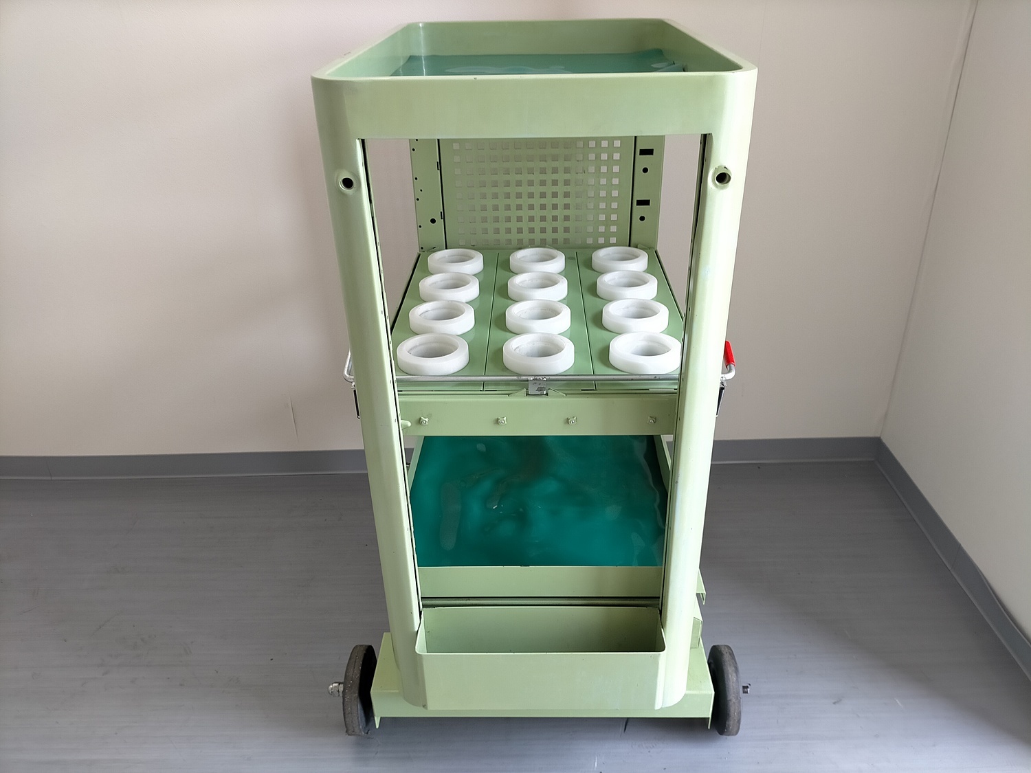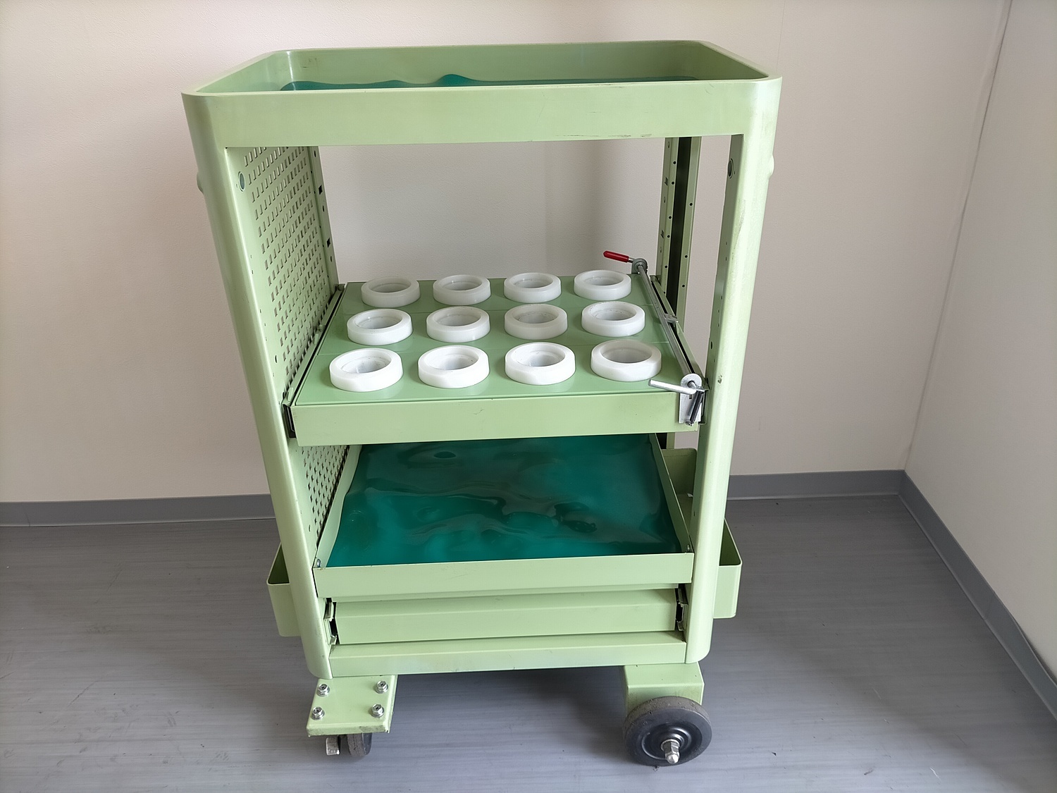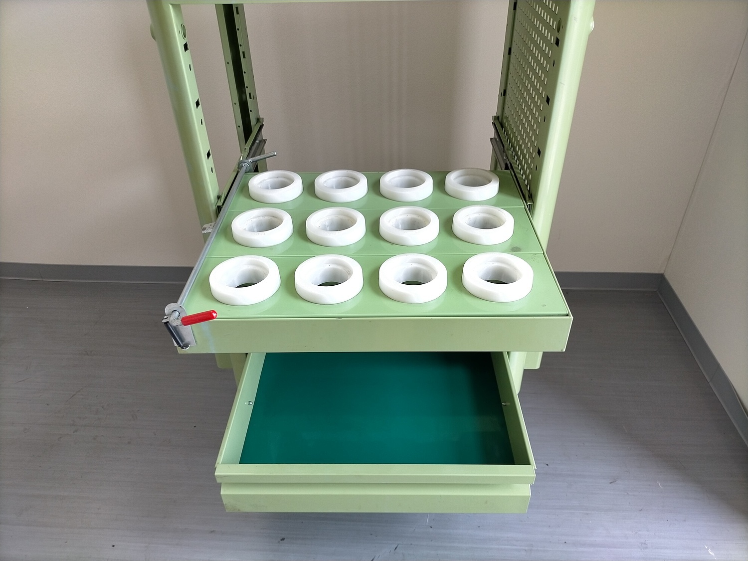 本体寸法:600×400×H915mm HSK63用 12本収納 ツール収納スペース スライド可能 引出し付 内寸 470x380xH80mm キャスター付