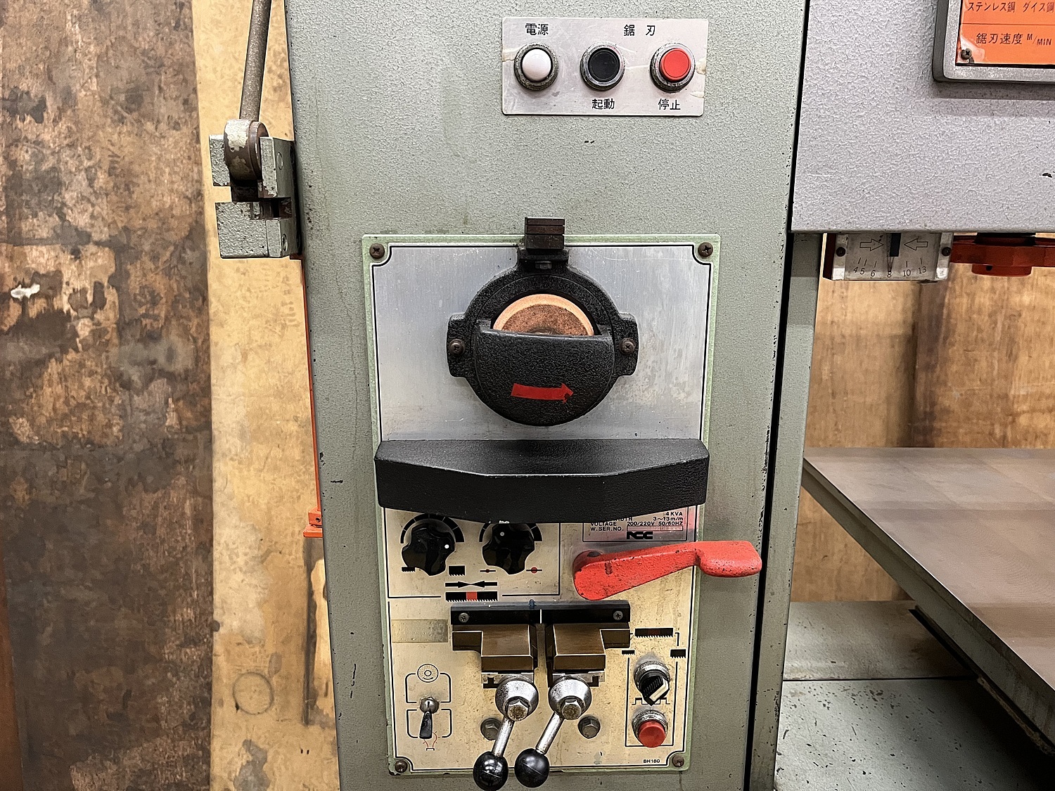 三相200V/単相100V 切断能力:奥行400mm×高さ250mm テーブル:550×695mm 自動送り装置付 質量:約630kg