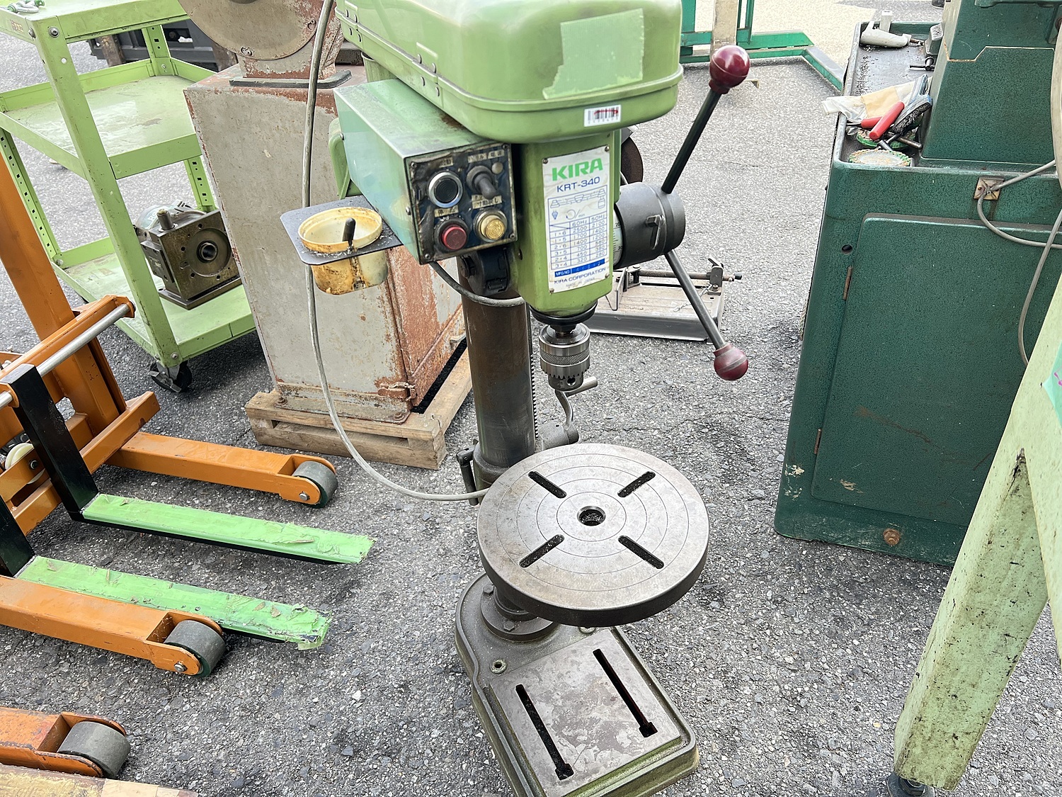 タップM4-10(S45C)M4-12(FC200) ドリル3-11mm(S45C)/3-13mm(FC200) 三相200V 50/60HZ 280/320-2100/2500rpm 丸テーブル285mm 丸テーブル285mm クイル送80mm 機械高1030mm 質量80kg 写真は未掃除の状態を掲載しております。 内容と現品に相違がある場合は、現品を優先させていただきます。 |