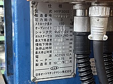 3t ストローク150mm オープンハイト280mm シャンク穴φ20×40 ボルスター寸法350×240mm 最大下降速度100mm/sec 最大停止時間180ms 三相200V 0.75kw 内容と現品に相違がある場合は、現品を優先させていただきます。 |