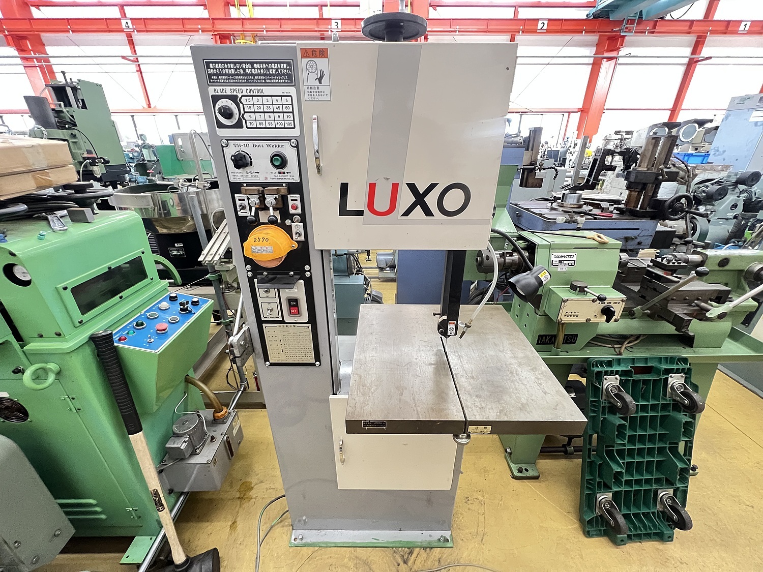 切断能力H200mm×W295mm テーブル500×500mm 鋸刃長さ2550mm 本体寸法H1540×W760×D540mm 重量200kg 写真は未掃除の状態を掲載しております。 内容と現品に相違がある場合は、現品を優先させていただきます。 |